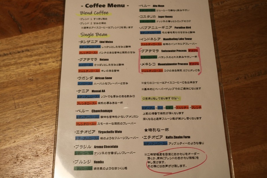 メニュー表とにらめっこして、コーヒーを選びます。