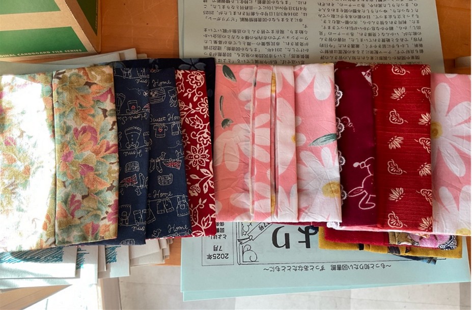 ふと書庫蔵さんの手元に目をやると、何かがずらりと並んでいます。色や柄もさまざまな手作りのティッシュケース。