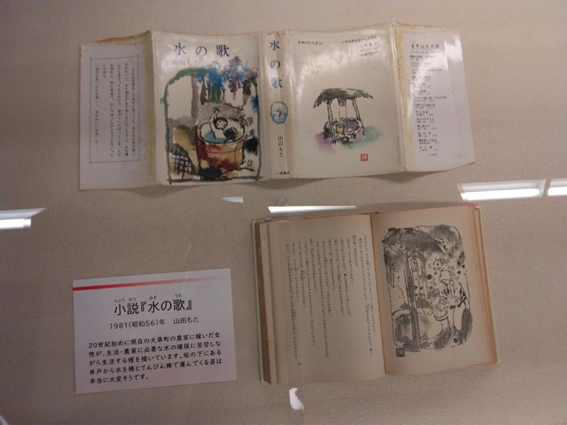 山田もと著『水の歌』(小峰書店、1981年刊行)です。著者の山田もと(1920―2004)は渥美郡神戸村大草(現在の田原市大草長)の児童文学作家。生家のある赤羽根地区は高台に位置し、水が出なかったため、雨水を溜めるか、共同井戸から汲んできた水を大きなかめに溜めるしかありませんでした。共同井戸から家庭に水を運ぶのは主婦や子どもの仕事とされ、『水の歌』の中でも、主人公が姑に教えてもらいながら寒空に水汲みをする様子が描かれています。舞台は昭和初期の渥美半島の村落で、主人公の“おしま”による東三河弁のモノローグによって物語が進められています。
